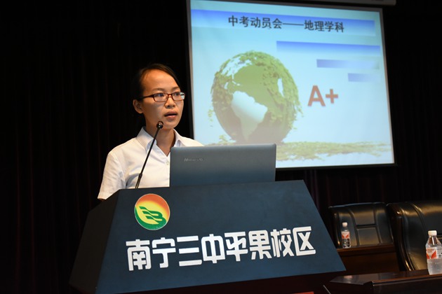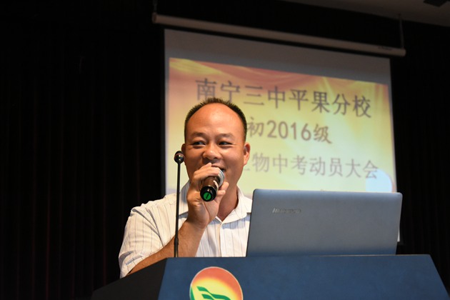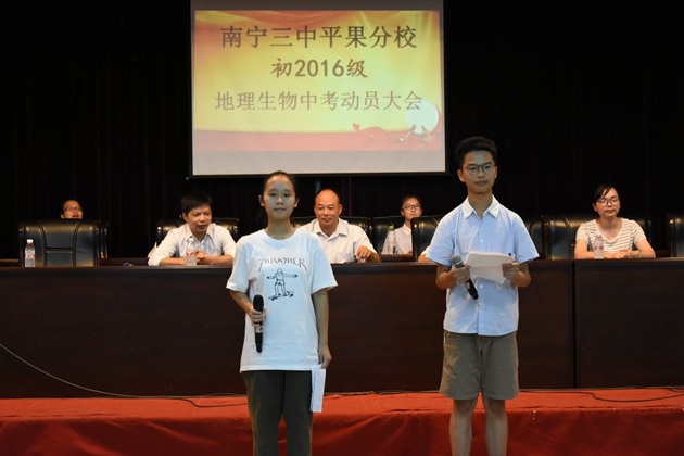 地理生物中考的战鼓声已经擂响,为了显示决心、增强信心,初2016级举行了地理生物中考动员大会,大会于6月14日19点在学校报告厅隆重举行。出席本次大会的有校后勤副主任李华强老师、年级组长农海涛老师、副组长熊建新老师、副组长黄艳娥老师以及年级全体师生。