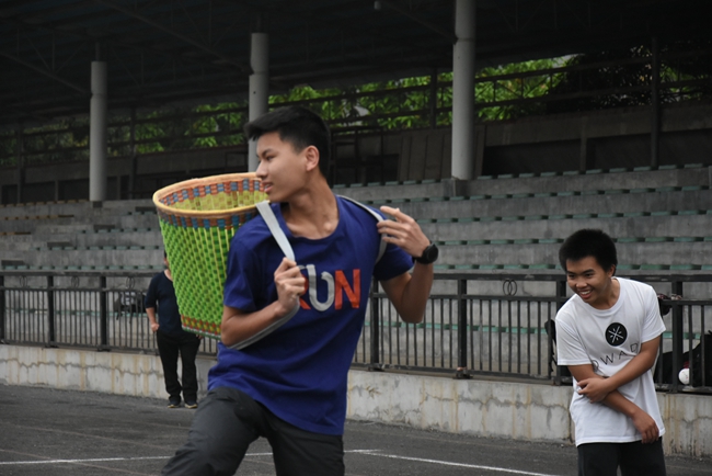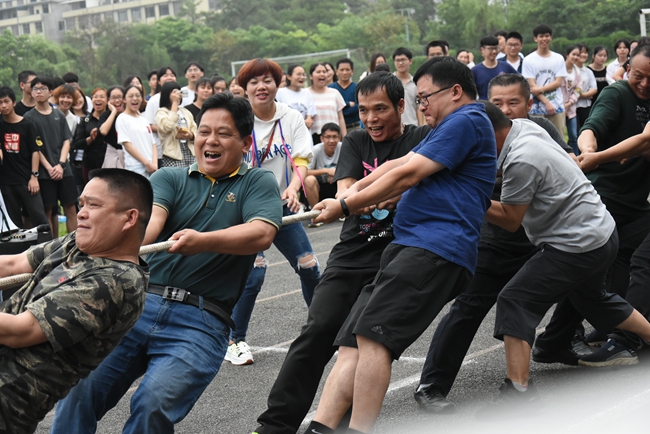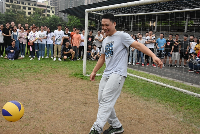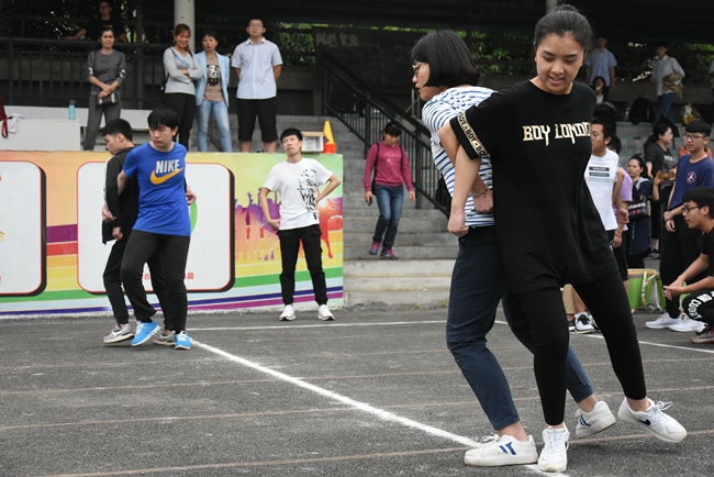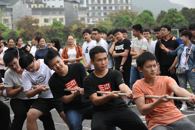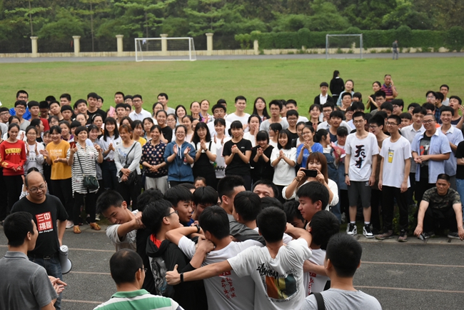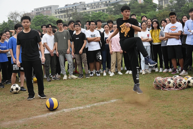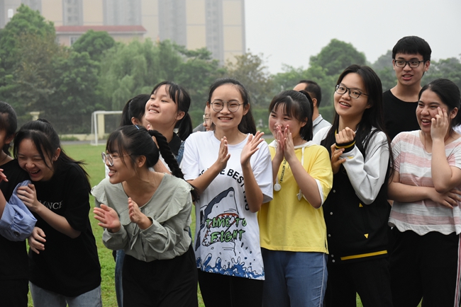 活动分为五项内容,分别是抛接绣球、“心心相印”、“圈地站人”、“临门一脚”以及学生代表与家长代表的拔河比赛。活动由年级组长黄宗祧老师主持。在评委老师宣布完相关活动规则后,素质拓展活动开始。首先举行的是抛绣球比赛,每班16个同学或家长组成的抛接绣球队进行比赛,这个项目考验了抛绣球的同学和接球的同学的默契程度。第二个项目是“心心相印”——齐心协力运送气排球比赛。同学们通过接力的方式,在规定时间内运送气排球,数量多的班级获胜。在接下来的比赛项目中,同学们为了班级荣誉而战,参与热情高涨,乐在其中。