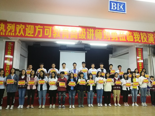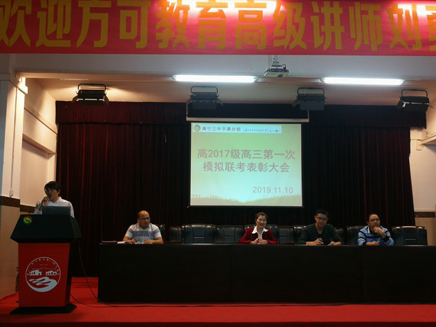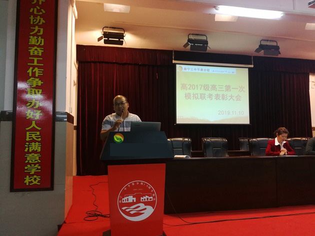 2019年11月10日晚,高三年级在我校学术报告厅召开了高三第一次模拟联考表彰大会。高三年级全体师生出席了此次会议。
