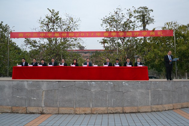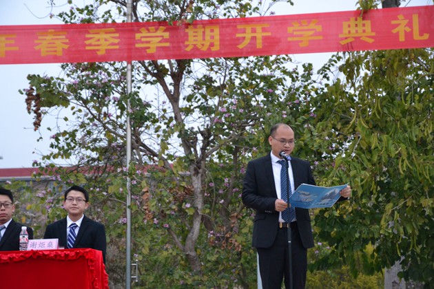 首先,由黄尚泽董事长致辞。黄董事长做了热情洋溢地讲话。他指出在这万物复苏、百花开放的季节,我们迎来了充满活力、充满希望和丰收的新学期。希望全体师生鼓足干劲,昂扬斗志、奋勇前进、有所作为!希望高三、初三的同学们积极备考,狠下功夫,树立信心,迎接挑战,为夺取高考、中考的全面胜利而努力奋斗。高二、初二的同学们正是增强实力、奋力向前的阶段,要确定奋斗目标,用刻苦的汗水去追求光荣与梦想。高一、初一的同学们要深挖基础、夯实基础知识,全面系统地学习,为日后的发展做好知识储备。最后,黄尚泽董事长要求全体师生员工同心同德、团结奋进,力争开创我们平果三中教育教学的新局面。