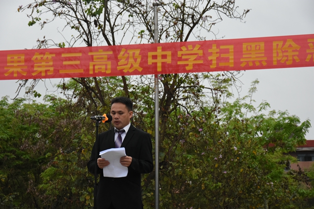 希望全体师生积极行动,充分认识扫黑除恶重要意义,营造人人参与扫黑除恶的良好校园社会氛围。为确保教育教学秩序稳定、还平果三中一方净土、做出自己应有的贡献。