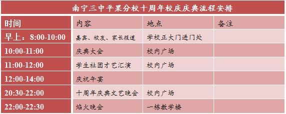 为总结经验,展示办学成果,谋划发展大计,激励万千学子,再塑三中辉煌。我校决定于2015年11月14日上午10时在校内广场举行建校十周年庆典大会,我们诚挚邀请各级领导、四海校友、各位家长聚首三中,共襄盛举,齐展宏图,同谱华章!