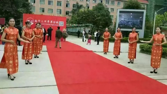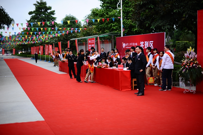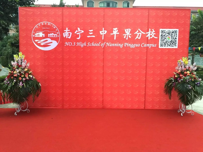 当日上午,南宁三中平果分校繁花似锦,彩旗飘扬,处处洋溢着喜庆热烈的气氛。学校大门设立签到区,平果分校教师和学生志愿者笑迎来客。学校操场主席台醒目的“十周年庆典”背景,彰显着南宁三中平果分校走过的十年风雨历程。南宁三中平果分校校庆庆典分为三个流程:流程一为庆典大会,由主要领导、嘉宾致辞、发言;流程二为学校学生社团汇演;流程三为校庆文艺晚会。