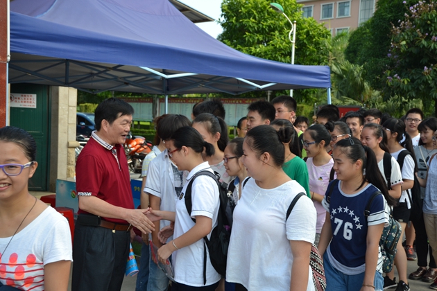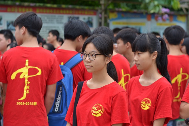 2016年6月24日8点08分,南宁三中平果分校初三年级师生在校门口集合,准备前往中考考场。今天是中考开考的日子,一大清早,初三年级全体师生在校门口整装待发,杨敏校长、高文广常务副校长和黄春彬副校长等领导以及初三年级全体老师,都站在校道欢送学生去参加考试。在学校领导和班主任的指挥下,学生们斗志昂扬地走出校门,有序地坐上学校包的公车,前往平果实验初中参考。