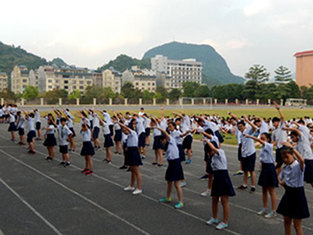 为活跃校园文化生活,进一步增强同学们的体质,提高学生《七彩阳光》广播操的质量,展示学生的青春风采,培养学生的团队意识,促进我校体育活动的开展,并激发学生的运动兴趣。2016年10月28日下午,我校初二年级在校田径场隆重举行了本学期的广播操比赛。莅临指导的有分管年级领导潘忠骏主任、阮国辉主任,年级组长彭玲玲老师、副组长李贤伟老师,评委由林振东主任及丁鹏、黎琳、黄东杰、宁春龙等体育组老师担任。简短的开幕式过后,比赛正式开始。比赛以两个班级为1组,共分6组进行角逐。参赛队伍身着统一的服装,迈着整齐的步伐,踏进田径场中央进行比拼。随着广播体操的音乐响起,在轻松而舒缓的音律中,同学们昂首挺胸,伸臂,扩胸、转体、踢腿、弯腰……动作娴熟到位,张弛有度,充盈着刚健之美,洋溢着青春的气息。比赛中,各班同学精神饱满,动作整齐,齐心协力为班集体争取荣誉,表现得非常团结。经过近1个小时的紧张角逐,2班、3班、4班、6班、9班、11班获得本次比赛的一等奖,1班、5班、7班、8班、10班、12班获得本次比赛的二等奖。