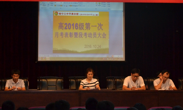 10月24日晚6:50,高2016级全体师生在学校报告厅召开了本学期第一次月考表彰暨段考动员大会。杨敏校长,学生处林振冬主任出席了会议,本次大会由杨振融老师主持。