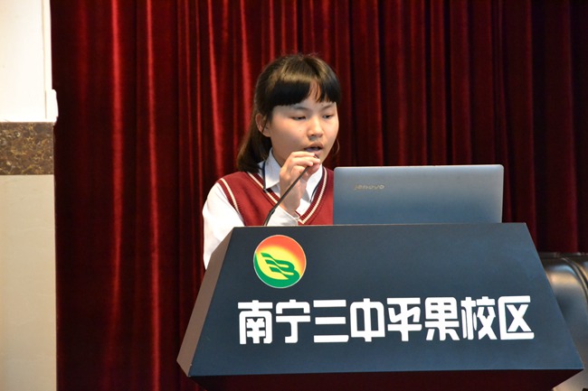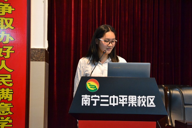 卢丽雯同学宣读获得成绩进步奖的同学名单