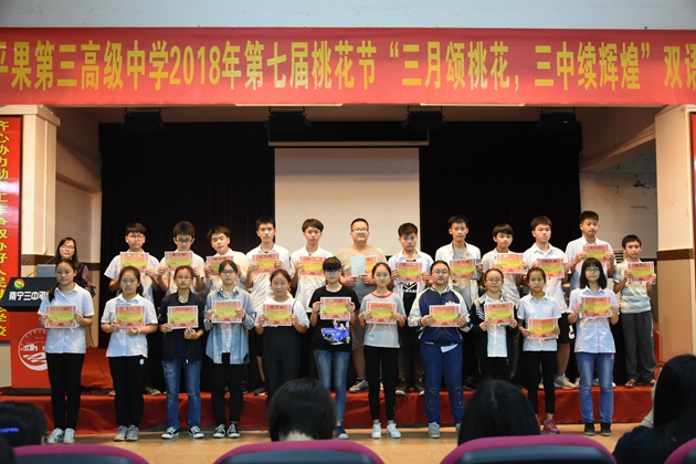 大会的第一项,由农海涛老师宣读了在第一次月考中取得优异成绩的学生名单,在雄壮的颁奖音乐声中,年级领导及老师们为获奖的同学颁发奖状,这是对他们的努力和进步做出肯定。大会第二项,由年级副组长黄艳娥老师对上一阶段的临界生工作进行总结并对荣获A+潜力奖的学生进行表彰。最后,后勤主任潘忠峻老师做段考动员。他鼓励同学们要有追求卓越、奋发向上的精神,并预祝同学们在即将到来的段考中取得优异的成绩。