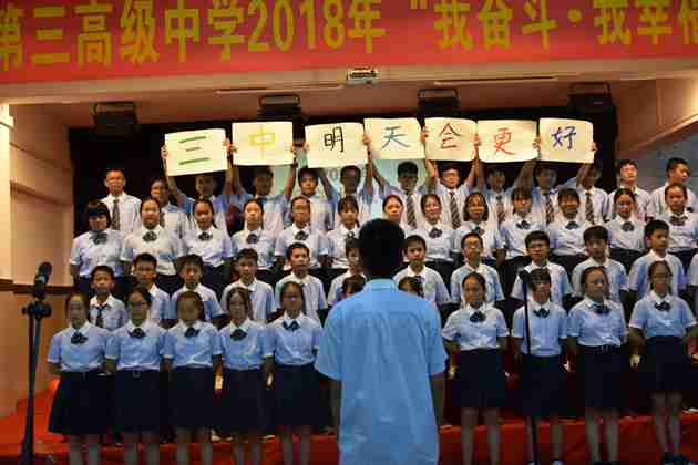 在比赛过程中,各班级的同学热情洋溢、神采飞扬,尽显三中学子风采。他们用满腔的热情唱出自己对班级的无限热爱之情,用嘹亮的歌声抒发出自己对梦想的不断追求和美好憧憬,显示了他们的朝气与活力,演绎出新时代初中生的精神和风采。比赛精彩纷呈,高潮迭起,掌声不断。《没有什么不同》、《明天会更好》……一首首耳熟能详的歌曲飘荡在学校上空,鼓舞士气、催人奋进。同学们精彩的表现给观众们带来了一场盛大的视听盛宴,博得了在场观众的阵阵掌声。