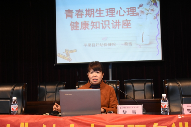 为了提高初中学生对青春期知识的了解,消除成长中的困惑,增强其防范和自我保护意识,帮助其树立“自尊、自立、自强”的意识,2018年12月27日下午,我校请来了平果县妇幼保健院儿保科黎雪主任跟初一年级的同学们一起分享青春的秘密和烦恼。讲座内容结合了现在青少年感兴趣的话题,同学们听得很认真,互动也很积极,现场气氛轻松活跃,讲座效果颇佳,受到初一同学们的欢迎。