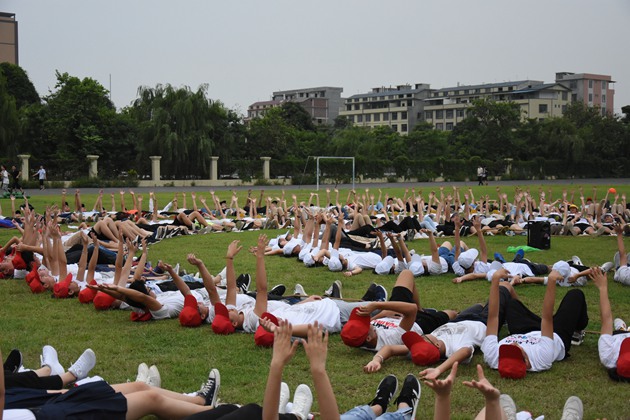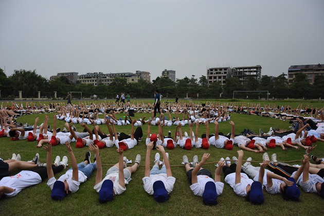 为了培养学生的团队执行力、团队抗挫力、团队凝聚力和团队协作力,也为迎接即将到来的期考,更为全力以赴冲刺高三做好准备,高2016级于6月15日下午四点半在田径场进行主题为“冲刺高三·青春无悔”的素质拓展培训活动。