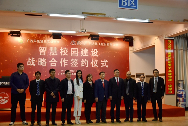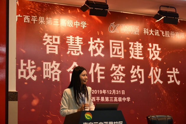 12月31日下午4:30,我校与科大讯飞公司“智慧校园”建设合作签约仪式在学校报告厅举行。我校黄尚泽董事长、杨敏校长、高文广常务副校长、黄春彬副校长、杨琦副校长、黄伟副校长、科大讯飞广西大区副总经理王欣、教育咨询总监高源等领导和我校全体教职员工出席了本次会议。