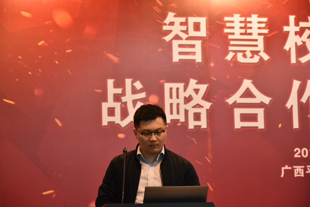 科大讯飞广西大区副总经理王欣先生也指出,科大讯飞广西分公司将在未来与我校一起精诚合作,将通过人工智能的手段和大数据的分析,更好地针对学生进行分层教学和段阶教学,通过个性化的学习手册,真正的做到因材施教。科大讯飞教育咨询总监高源就“利用讯飞人工智能优势打造信息化示范校”进行汇报。高源先生从智慧课堂系统如何做到以学定教、先学后教;大数据精准教学系统如何实现以评价促进教学;个性化学习系统如何做到因材施教三个方面就整个系统的功能做了介绍。