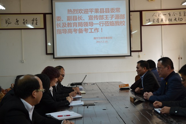 王子源部长对我校的高考备考工作给予了充分的肯定。王部长指出,平果三中是一所充满朝气、充满希望的学校。老师们努力工作,同学们勤奋好学。在2016年的高考中,我校取得了非常优异的成绩。相信在2017年,在全体老师和高三年级同学的共同努力下,高考定能再创辉煌。