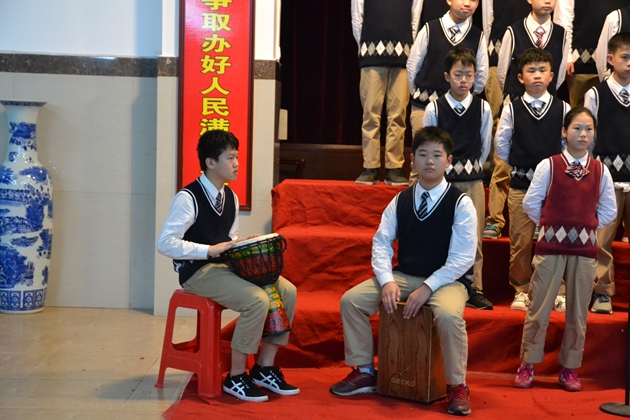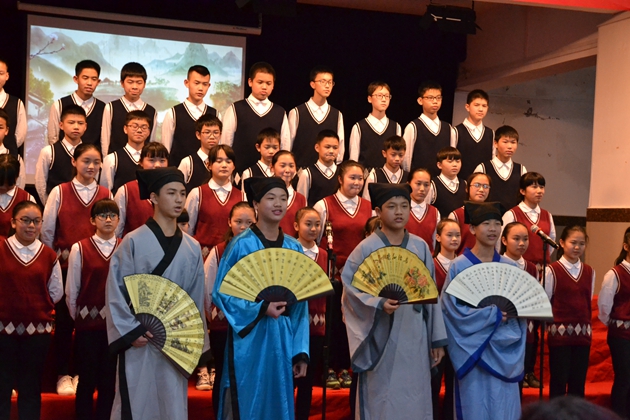 在这场中英双语朗诵比赛中,每个班级都做了充分的准备,精心的编排。朗诵形式多种多样,并伴有情景剧表演、舞蹈、手鼓配乐等等。声情并茂的朗诵,发自肺腑的歌声,都为全场观众带来了快乐与感动。参赛队伍以标准的发音、美妙的节目创意、精彩的现场发挥给观众留下了深刻印象。同学们深情的演绎,感染着每一位观众的心,展现了优秀的中英文诵读能力和表演能力。