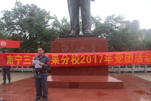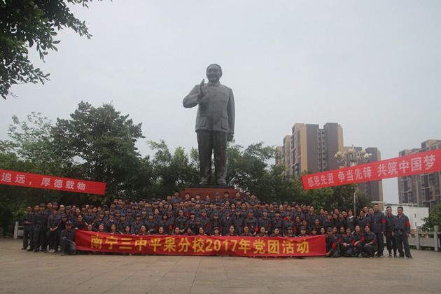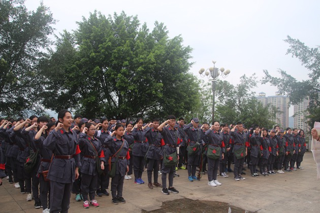 活动第一站来到平果县邓公山上,党员同志和团员们通过爬上邓公山感受革命先烈的不怕苦不怕累的“长征精神”,在邓公山上开展了意义丰富的党团活动,首先由罗维新书记给大家介绍平果革命先烈的英勇事迹,接着由罗书记带领我校党员们重温入党宣誓,让党员进一步认识到自身的使命与责任;接着由学生会代表带领团员们进行入团宣誓仪式,通过团员们的庄严宣誓,使同学们明白了自己肩负的责任与为国贡献的决心。最后,由杨敏校长给大家做总结发言,杨校长指出正是我们革命先辈的不懈努力,才给我们的国家变得富强、民主、和谐,希望大家在今后的工作学习中都能继承和发扬党的光荣传统,浓厚家国情怀,强化使命担当。