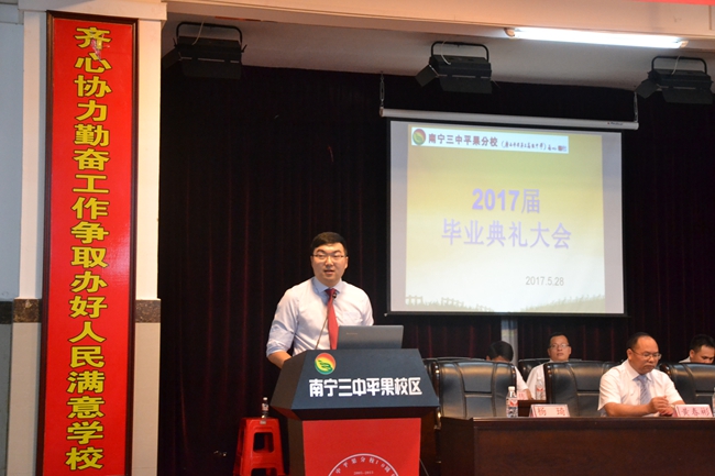 5月28日晚7:30分,我校全体高三年级的老师和同学们齐聚学校报告厅,隆重举行了高2017届日的毕业典礼。出席毕业典礼的领导有黄尚泽董事长、杨敏校长、高文广常务副校长、黄春彬副校长以及学生家长代表陶俊先生。大会由校长助理兼校办主任杨琦老师主持。