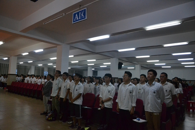 大会在唱国歌升国旗的仪式中拉开了帷幕。升旗仪式结束后,师生一起观看了学校技术室制作的“致我们的高中岁月”毕业视频,通过一张张照片和一个个片断让大家重温了三年来的许多精彩和温情的时刻。大家在欢声笑语和感动的泪水中再一次回忆起三年一起走过的岁月。