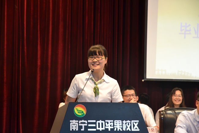 大会议程的第四项,教师代表巫玉清老师代表全体高三老师做了讲话。巫老师以大姐姐的身份、幽默的语言跟大家一起回忆了一起渡过的三年时光。感谢同学们给学校,给老师们带来了许多美好的回忆。高考毕业在即,大家即将离开母校,巫老师把“真”、“爱”两个字送给了大家,希望同学们做一个求真、正直、善良、有爱的人。