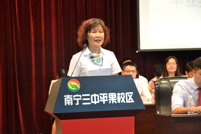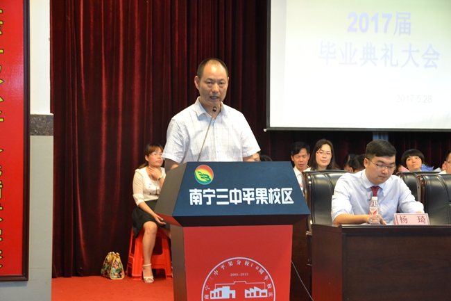 大会议程的第七项,杨敏校长致辞。杨校长对高2017届247名同学圆满地完成高中学业表示衷心的祝贺,感谢全体高三老师的辛勤付出,感谢家长对学校的信任与支持。杨校长对同学们提出了希望,希望同学们毕业后能继续发扬三中人敦品励学的精神,立大志,成大器。