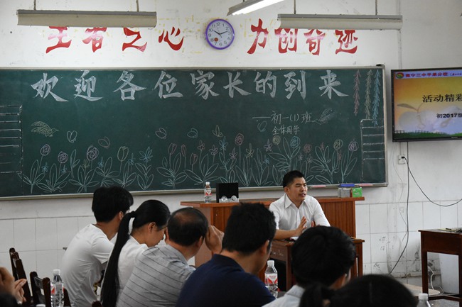 一大早,家长们就陆续来到学校,进入各班教室与老师们进行交流。各班主任准备了详实的材料并针对家长会做了精心布置:教室干净整洁,黑板上或写着欢迎家长的标语,或画着温馨的图画,使各位家长一走进教室就能感受到一种融洽、和谐的氛围。家长会上,老师首先感谢家长一直以来对学校的大力支持!接着,各班班主任、任课老师就本学期开学以来的学校工作、班级活动及学生在校表现,向与会家长做了详细的汇报,并分析了本次期中考试的成绩、学生在学习中存在的一些问题,给予了家长一些具体的有针对性的家庭教育建议,同时也就家长应如何更好的配合学校做好孩子们的教育工作交流了看法。