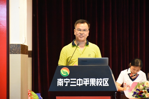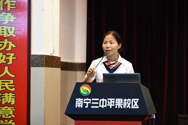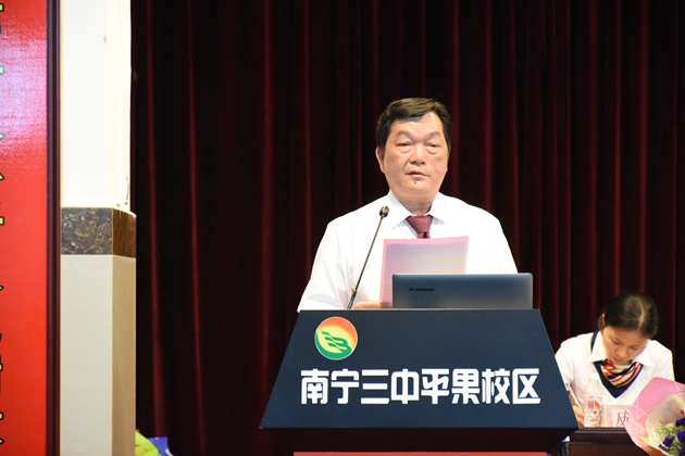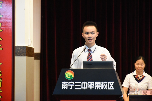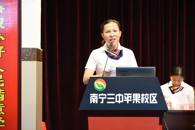 大会的第五项议程,家长代表发言。首先是家长代表黎雪女士发言。黎雪女士代表全体家长向一直以来关心同学成长付出心血、汗水和智慧的学校领导和老师们表示感谢。在高考即将到来之际,黎雪女士希望同学们以平常心对待高考,只要已经拼尽全力,不管结果如果,我们都无悔于我们的高中生涯。其次是家长代表黄国伦先生发言。黄国伦先生也对辛勤付出的老师们表示感谢,同时也对学生们表示祝贺。黄先生还希望今后同学们无论到了哪里都不要忘了心怀感恩,无论何时都要有责任担当,并且对生活能有所思考。最后,黄先生祝同学们金榜题名,平果三中高考再创辉煌!