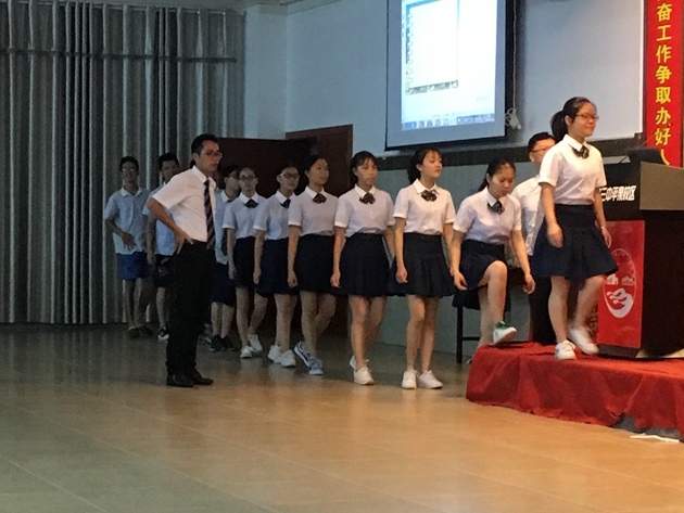 大会议程的最后一项,师生一起观看了学校技术室制作的“致我们的高中岁月”毕业视频,通过一张张照片和一个个片断让大家重温了三年来的许多精彩和温情的时刻。大家在欢声笑语和感动的泪水中再一次回忆起三年一起走过的岁月。