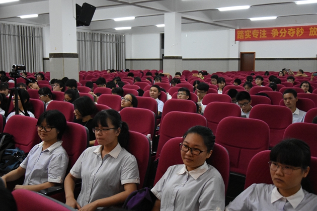 大会议程的第七项,杨敏校长致辞。杨校长对高2018届220名同学圆满地完成高中学业表示衷心的祝贺,感谢全体高三老师的辛勤付出,感谢家长对学校的信任与支持。杨校长希望同学们能坚定信心,全力应考;抓紧时间,提高效率;抓住重点,综合平衡。同时杨敏校长还赠给学生六个字:信心、细心、耐心。愿同学们能在高考中取得成功!