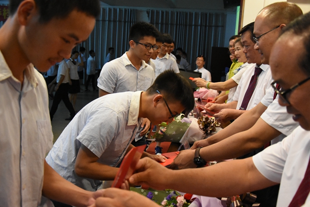 到此,高2018届毕业典礼圆满结束。愿同学们“乘风破浪会有时,直挂云帆济沧海”,在六月高考中取得成功!