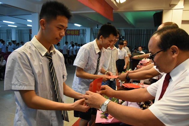 大会议程的第六项,学校领导为同学们颁发高中毕业证书。同学们从领导手中接过毕业证书,同时表示感谢三中、感谢老师们对大家的培养。不管以后身处何处,都会把在三中渡过的三年美好时光珍藏记忆深处,有时间会常回学校走走看看。