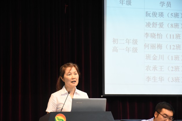 大会第四项,由杨敏校长讲话。杨敏校长就我校这几年来“青蓝工程”实施的效果进行了回顾。由于“青蓝工程”的实施,使得我校一批年青老师迅速地成长起来,在平果县、百色市甚至是广西区级竞赛中勇夺一等奖,有的老师还成为本学科的骨干教师。杨敏校长从努力提高自我意识;抓住一切机会积极参加听课、评课、赛课活动;超越自我;严抓教学管理和学生管理;有耐心能包容几个方面对新老师提出了要求。并希望我校所有的老师做到勤于学习、善于反思、勇于实践,乐于奉献,做一个与新时代要求相符合的老师。