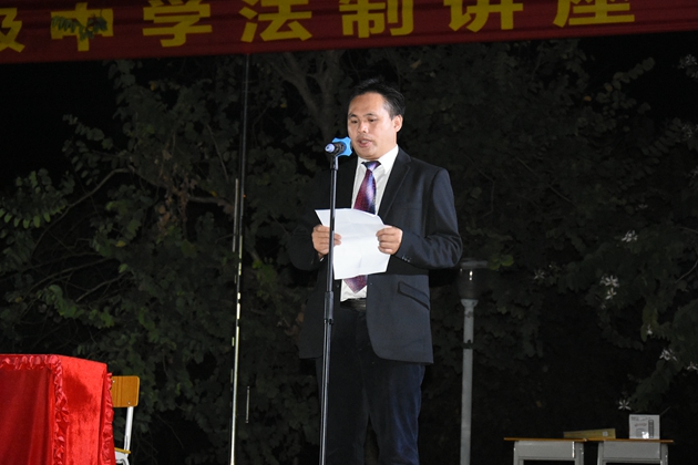 为了增强学生法律意识,提高学生法律知识水平,营造文明、平安、和谐的校园育人环境,10月30日晚7点,在学校操场,中铭律师事务所的黄翔宇律师为我校师生作了一场生动的法制教育讲座。出席讲座的学校领导有黄尚泽董事长、高文广常务副校长、黄春彬副校长及各部门中层领导。讲座由罗维新书记主持。