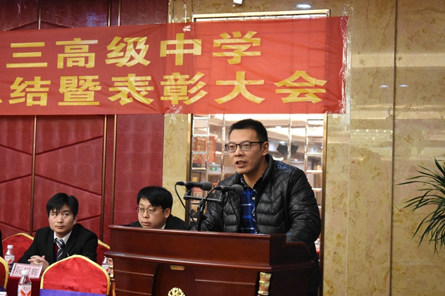 大会议程的第三项,由黄尚泽董事长致辞。黄董事长首先向一向关心、支持、帮助我校发展的县委、县政府、县教育局、兄弟单位和社会各界友人表示衷心地感谢!向在年终考核和“青年教师技能大赛”中获得嘉奖的各位的教职员工们表示祝贺!接着黄尚泽董事长就2018——2019学年度的工作做了总结。一年来学校各部门密切配合,相互支持,根据工作计划,充分发挥职能作用,工作效果良好、工作质量提高,形成奋发有为、团结协作的良好局面。一年来,学校各项工作扎实开展、有序推进,不断取得新进步!年级工作坚持紧抓教学质量这个核心,以良好习惯养成为教育的主攻方面,形成浓厚的学习氛围。班主任工作坚持坐班制度,认真组织、分层指导,加强教育教学的常规常态管理。推行班主任创新特色工作等管理措施,形成良好的班风、学风。教研组、备课组工作坚持用集体智慧共同研讨备课,确定教学目标、教学重点、教学特色,总结教法学法、质量分析等,教学质量明显提高。高考、中考备考工作目标明确、措施落实真抓实干,特别是在清、北尖子生的培养上,备考冲刺工作稳步开展,态势良好。新学期充满新挑战,我们一定要有所作为,要敢于乘风破浪,胜利驶向辉煌的彼岸!