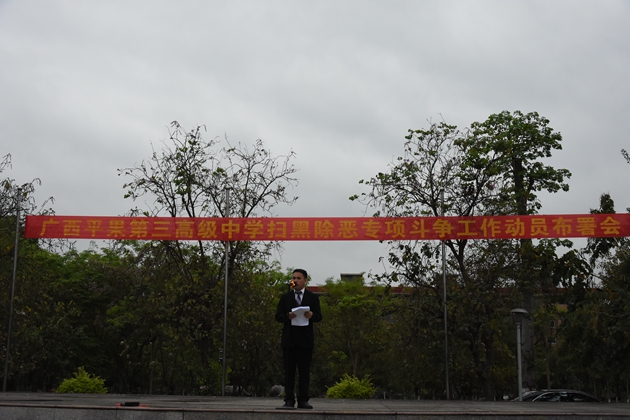 希望全体师生积极行动,充分认识扫黑除恶重要意义,营造人人参与扫黑除恶的良好校园社会氛围。为确保教育教学秩序稳定、还平果三中一方净土、做出自己应有的贡献。