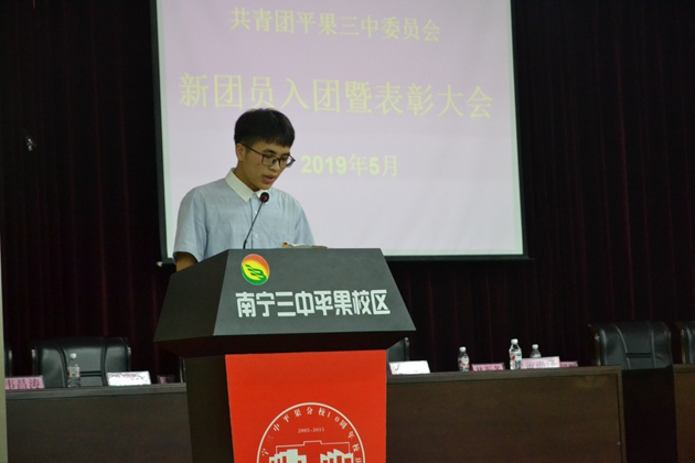 大会第五项,新团员代表岑克泉同学讲话。岑克泉同学向大家承诺,会更加努力学习团的基本知识,学习科学文化知识,在学习,工作及其他各项活动中起带头作用。