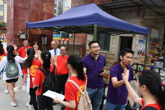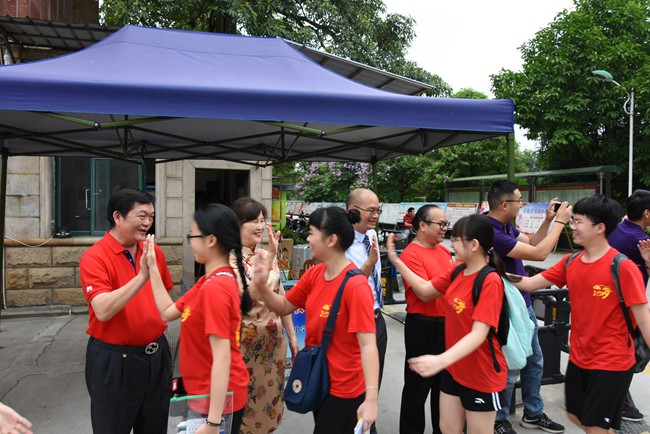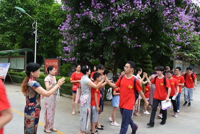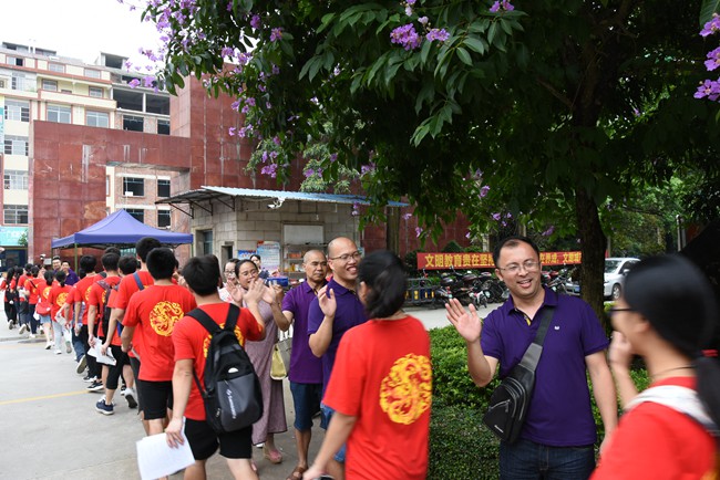 一年一度的高考牵动着广大家长、老师和同学们的心。6月7日上午,我校校领导黄尚泽董事长、杨敏校长、高文广常务副校长、黄春彬副校长、杨琦副校长、黄伟副校长及部分中层领导、部分学生家长一大早就来到学校,为参加今年高考的高三学子送考壮行、祝福加油。