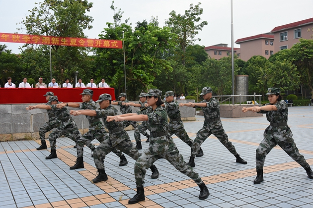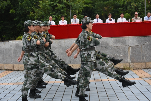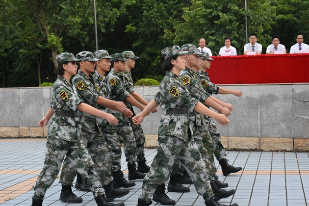 之后,参与本次军训带队的教官们给在场的领导和师生们做了风采展示。他们的步伐整齐划一,他们的声音铿锵有力,不少学生为教官们的精彩展示发出阵阵喝彩。