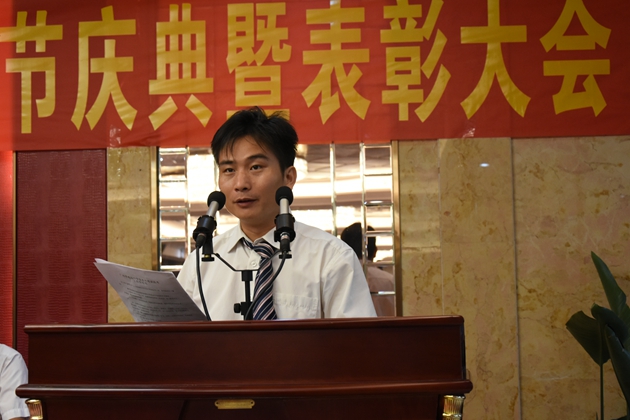 大会第三项,黄尚泽董事长致辞。黄尚泽董事长首先给在座的领导、嘉宾和全体教职员工送上节日的祝福。并对各位获得表彰的优秀教师表示祝贺。董事长首先回顾我校今年中考、高考所取得的优异成绩。董事长表示,这些成绩的取得充分证明我校备考措施落实到位、高考、中考攻坚能力强大。也证明了我校的学生们潜力巨大、奋发有为。在今后的工作中,老师们要以负责、担当的态度,以职业的良心脚踏实地,真抓实干,扎实地走好每一步路,做好自己的每一件事情,提升自我要求,注重学习、善于思考、不断积累、提高本领。学校办学14年以来,我们并没有把教育当作产业来做,而是始终把教育当作公益性的、非营利性的、普惠性的、回报社会的事业来做。学校连续三年产生清华、北大学生,每人给予奖学金60万元。这在全国基础教育中是没有先例的。14年来,学校对于高中部、初中部优秀学生减免学费、提供生活补助费以及对于贫困家庭学生减免学费、提供生活补助费累计达四千三百多万元,在新的学年里,我们要勤奋努力工作,树立信心,团结协作,以优异的成绩迎接建校十五周年。