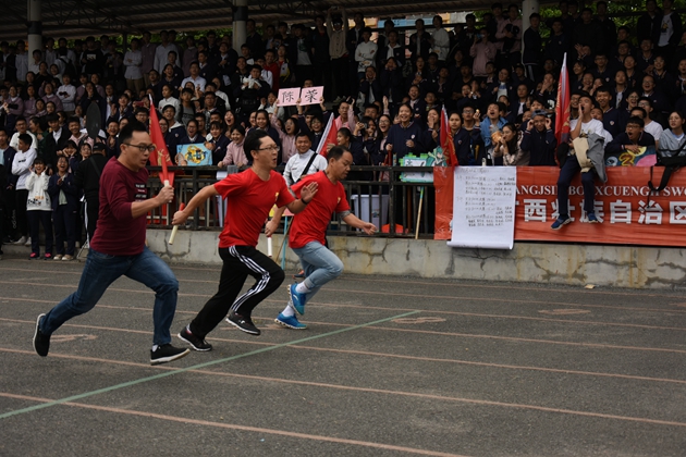 为共建快乐、和谐校园,我校教师也参与到运动会中,他们精神抖擞,情中萌动的是学生的成长;他们奋勇拼搏,心中装满的是教育的神圣。短跑、抛绣球、跳绳,他们全力以赴、坚持不懈,为学生树立优秀榜样!昨天,他们以高尚的人格耕耘在三尺讲台;今天,他们用活力彰显着教师的风采!