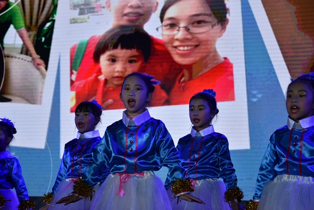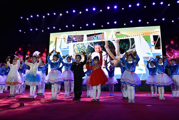 本场晚会分为五个篇章。可爱的三中宝贝们带来的开场表演《三中,我的家》,小朋友们深情的朗诵,家庭秀表演的幸福和温馨,获得在座家长、老师、同学们的阵阵掌声。第一篇章的校园雄风,展示的是震撼的班级合唱:《三中校歌》、《映山红》、《大中国》……一首首精心编排的班级合唱,让观众们一次次享受到视听盛宴。第二篇章的才艺展示,架子鼓、诗朗诵、民族舞、拉丁舞的串烧表演展示了同学们的才艺和个性,羸得同学们的阵阵喝彩。第三篇章的育人英姿,年青教师们的《时装秀》和《旗袍秀》、体育组的老师们和初一、初二部分同学带来的武术表演《武动雄飞》更是获得了观众们的最热烈的欢呼和喝彩声。在第四篇章的艺海采叶中,梁丹、陈祥超、韦晴晴几们老师优美动听的歌声再一次把晚会推向了高潮。最后,在哈嘹组合独具乡情的民族乐曲中,晚会圆满地落下了帷幕。