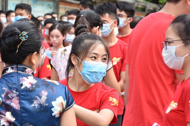 学校领导与老师亲切地与高三学子们握手,叮嘱他们要沉着自信,仔细答题,尽情发挥,祝福他们在高考中考出好成绩!高三年级的女教师们还特意穿上了旗袍,希望同学们“旗开得胜”!