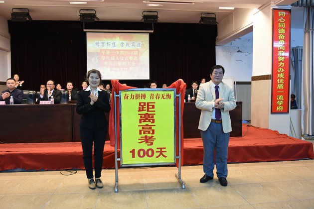 黄尚泽董事长和杨敏校长进行百日倒计时揭牌仪式