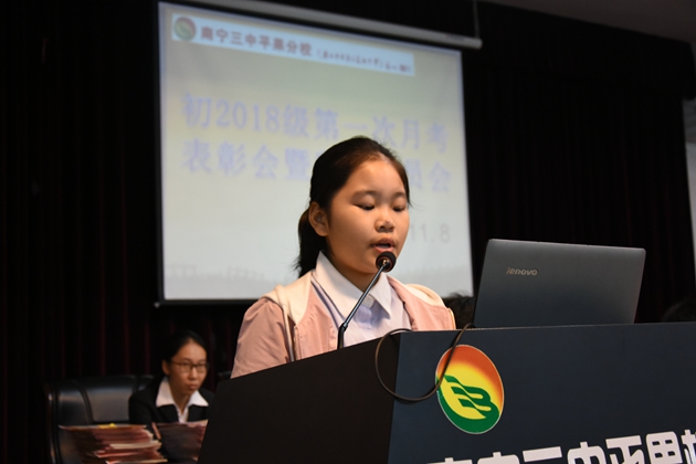2018年11月8日晚上,我校初2018级师生在报告厅举行了第一次月考表彰会暨段考动员会。出席本次活动的领导及嘉宾有:潘忠峻主任、阮国辉主任、年级组长李贤伟老师、年级副组长陈炎锋老师、年级副组长周扬老师、2018级初一年级各班班主任、各科任老师以及学生。第一次月考表彰会暨段考动员会由年级组长李贤伟老师主持。