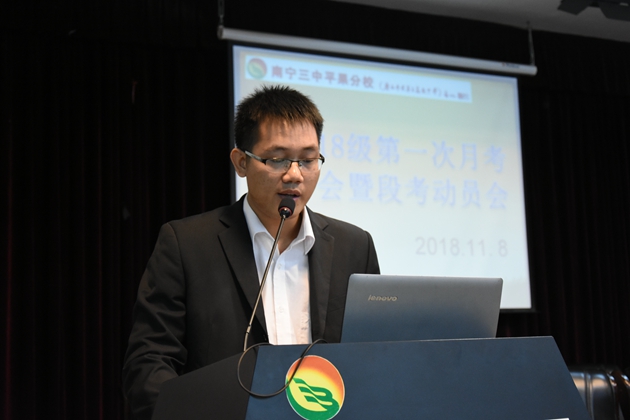 大会最后一项流程由覃沁老师讲解段考攻略。覃老师通过幽默风趣的语言给同学们三点意见。一是真正的高贵,不是优于别人,而是优于过去的自己,要有目标有计划的复习。二是有备而来,回归课本,重视基础,查漏补缺,提高效率。三是平常心作答,诚信应考。