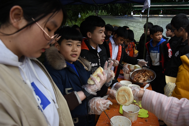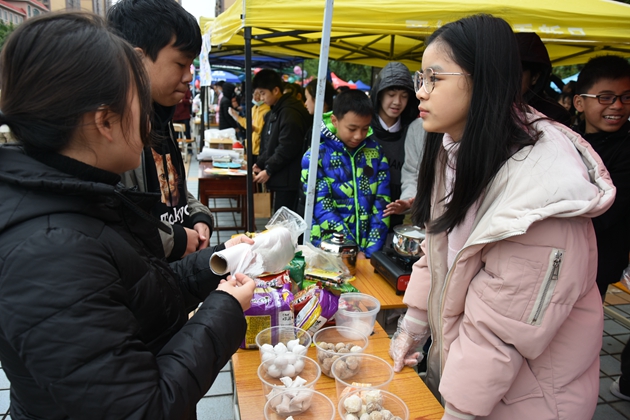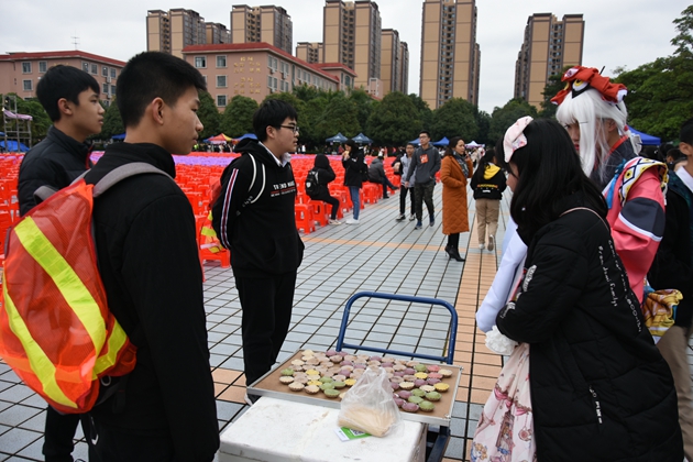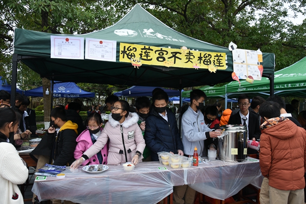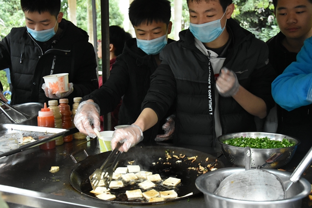 校园里美食一条街随处可听见同学们激情饱满的叫卖声。为了此次美食嘉年华,各班在班主任的安排下,前期做了充分而细致的准备,精心设计和布置了班级摊位,准备大显身手,拿出自己的招牌美食。特色烧烤、炸鸡排、肉夹馍、爆米花、炒面、煮馄饨、香豆腐、甜点等等各色美食无不“勾引”着吃货们的味蕾,令人垂涎欲滴。到处是气球和鲜花,到处欢声笑语,在弥漫着各色美食气息中,美食一条街开展得有声有色。相信校园里的小吃货们一定能在美食一条街中一饱口福!