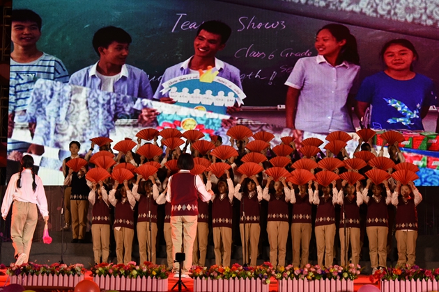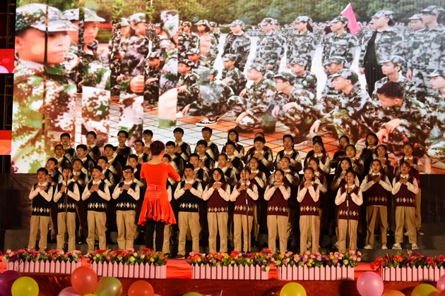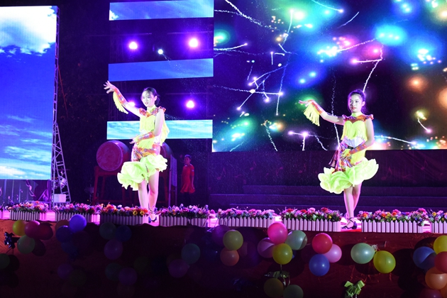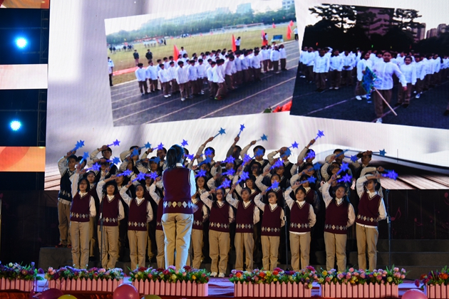 晚会由高文广常务副校长主持。高文广常务副校长为大家介绍了到场嘉宾及领导。之后由杨敏校长致辞。杨校长首先感谢各位领导、社会各界以及学生家长们对我校工作的支持,并就我校2018年学校在教育教学工作中取得的优异成绩做了总结。在新的一年里,我校将不辜负大家的期望,继续做好学校的各项工作,争取更大的进步,在2019年续写辉煌!接着由平果县教育局党委副书记、副局长李小荣女士致辞。李女士对学校一年来做出的成绩表示了肯定与赞扬。她鼓励学生发挥特长、彰显个性、提升素质,展示出莘莘学子的风采,并预祝三中元旦晚会圆满成功!黄尚泽董事长带领我校中层以上领导干部上台给全体参加晚会的领导、家长和同学们拜年,祝大家在新的一年里工作顺利、身体健康、阖家幸福!最后,黄尚泽董事长宣布晚会开始,拉开了晚会的帷幕。