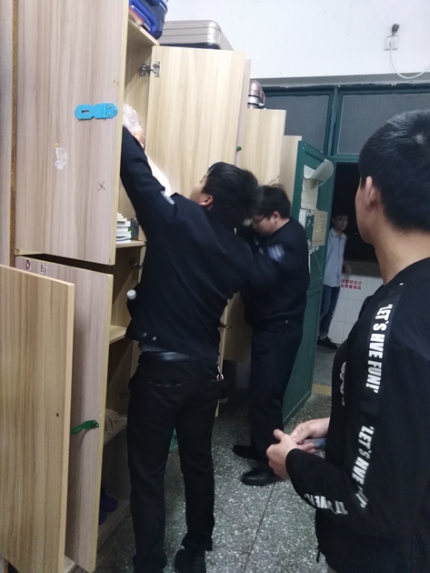 为进一步加强学校安全管理工作,保障全体师生的人身、财产安全,营造安全稳定、文明和谐的校园环境。3月5日晚,在城关派出所的大力支持下,我校党总支联合学生处、宿管处等处室开展了宿舍管制刀具突击检查活动 。