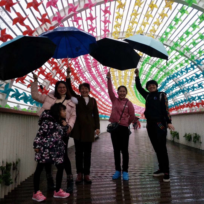 阳春三月,万物复苏,到处洋溢着浓浓的春意。在忙碌辛劳中,我校的女教工们也迎来一年一度的国际“三八”妇女节。为进一步激发我校女教职员工爱岗敬业、锐意进取的工作热情,充分发挥“半边天”的作用。学校组织全体女教职工到南宁园博园举行踏青庆祝活动,希望在这个属于世界妇女的节日里,让我们的女教职工们放松一下,尽情地抒发自己的心绪和情怀。天空虽然下着雨,但丝毫没有影响老师们游玩的兴致。大家兴高采烈地欣赏园中的各种美景,积极参与园内的各种活动。