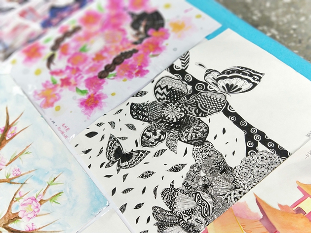 为丰富我校学生的校园文化生活,加强学生艺术与审美的交流,使学生有机会参与并实践创作,一起分享多姿多彩的中学生活,为此,美术组举行“三月· 桃花节” 学生绘画优秀作品展: