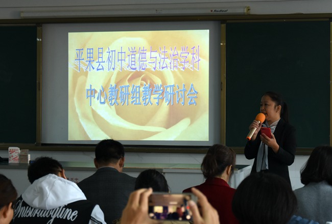 2019年11月15日上午8点40分,平果县初中道德与法治学科中心教研组教学研讨活动在18luck娱乐综合楼多媒体教室举行。